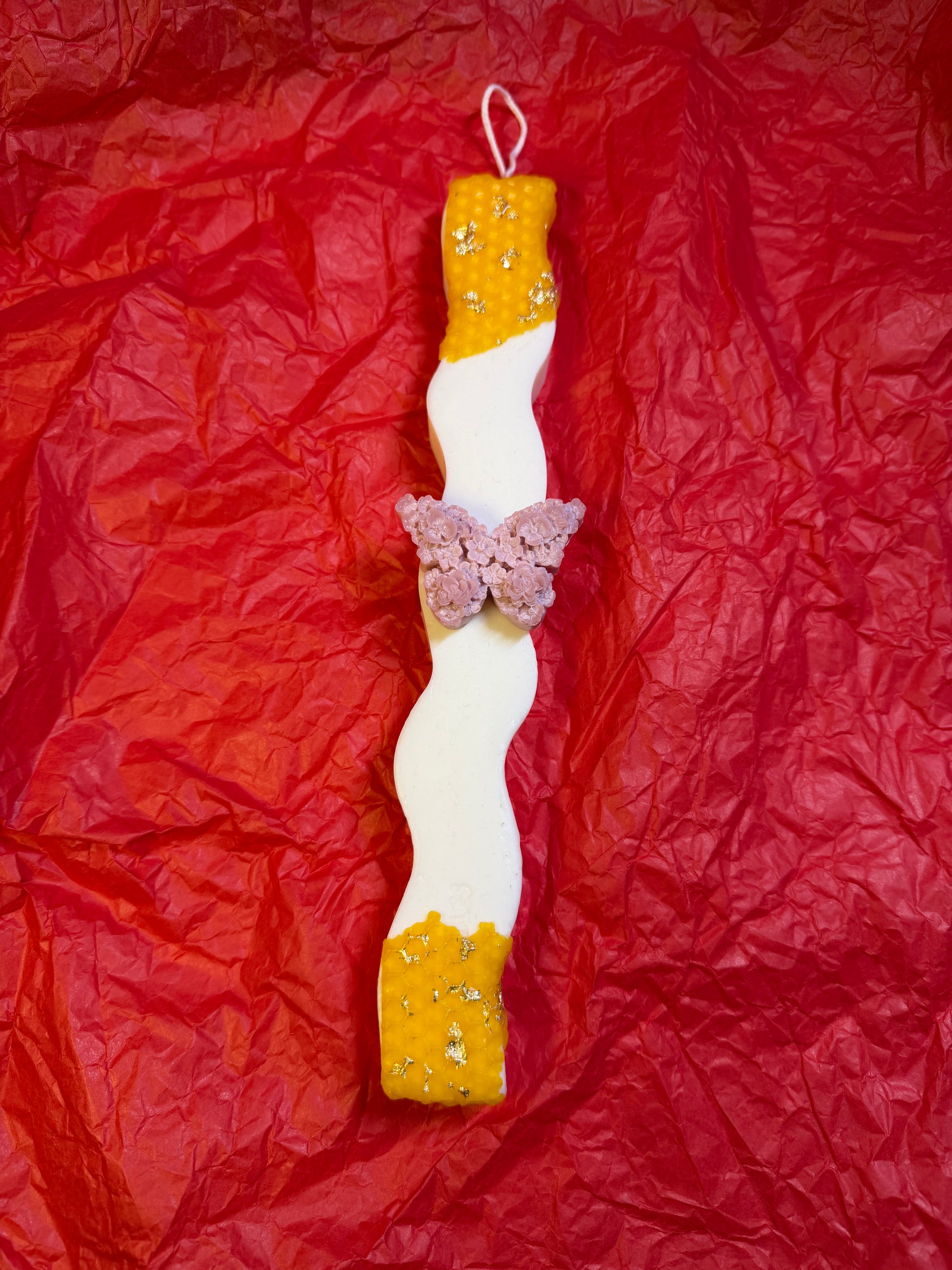 Λαμπάδα φτιαγμένη από φυτικό κερί σόγιας και μελισσοκέρι (130γρ), με άρωμα αμύγδαλο μπισκότο.🦋