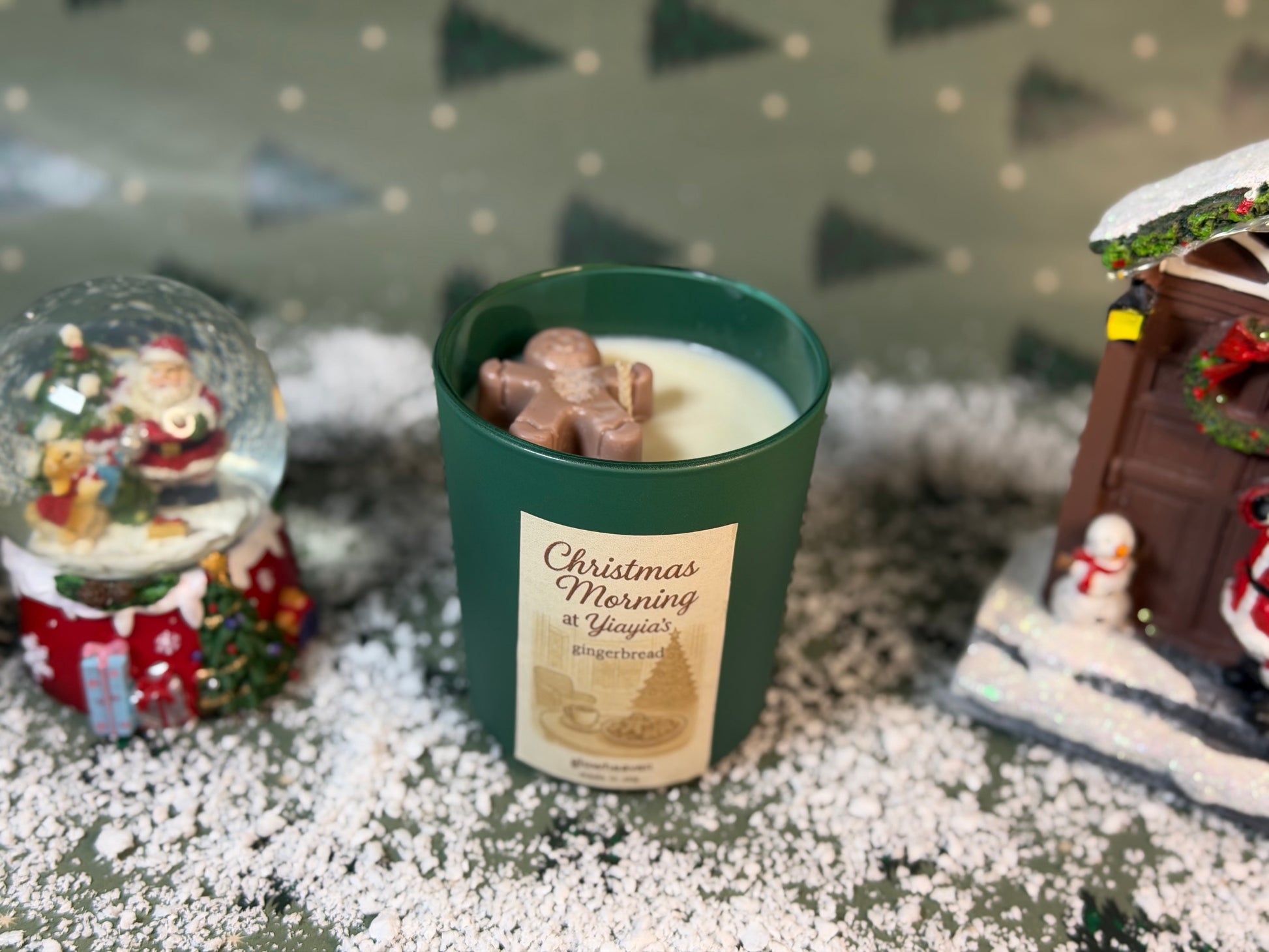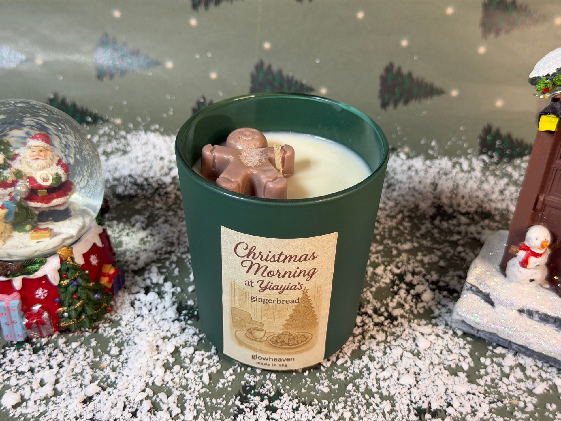 Το Christmas Morning at Yiayia’s (190gr) της GlowHeaven είναι φτιαγμένο στο χέρι από 100% φυσικό κερί σόγιας και αρωματισμένο με gingerbread — ένα άρωμα που συνδυάζει τη ζεστασιά του φρεσκοψημένου μπισκότου με νότες κανέλας, μελιού και γλυκών μπαχαρικών.