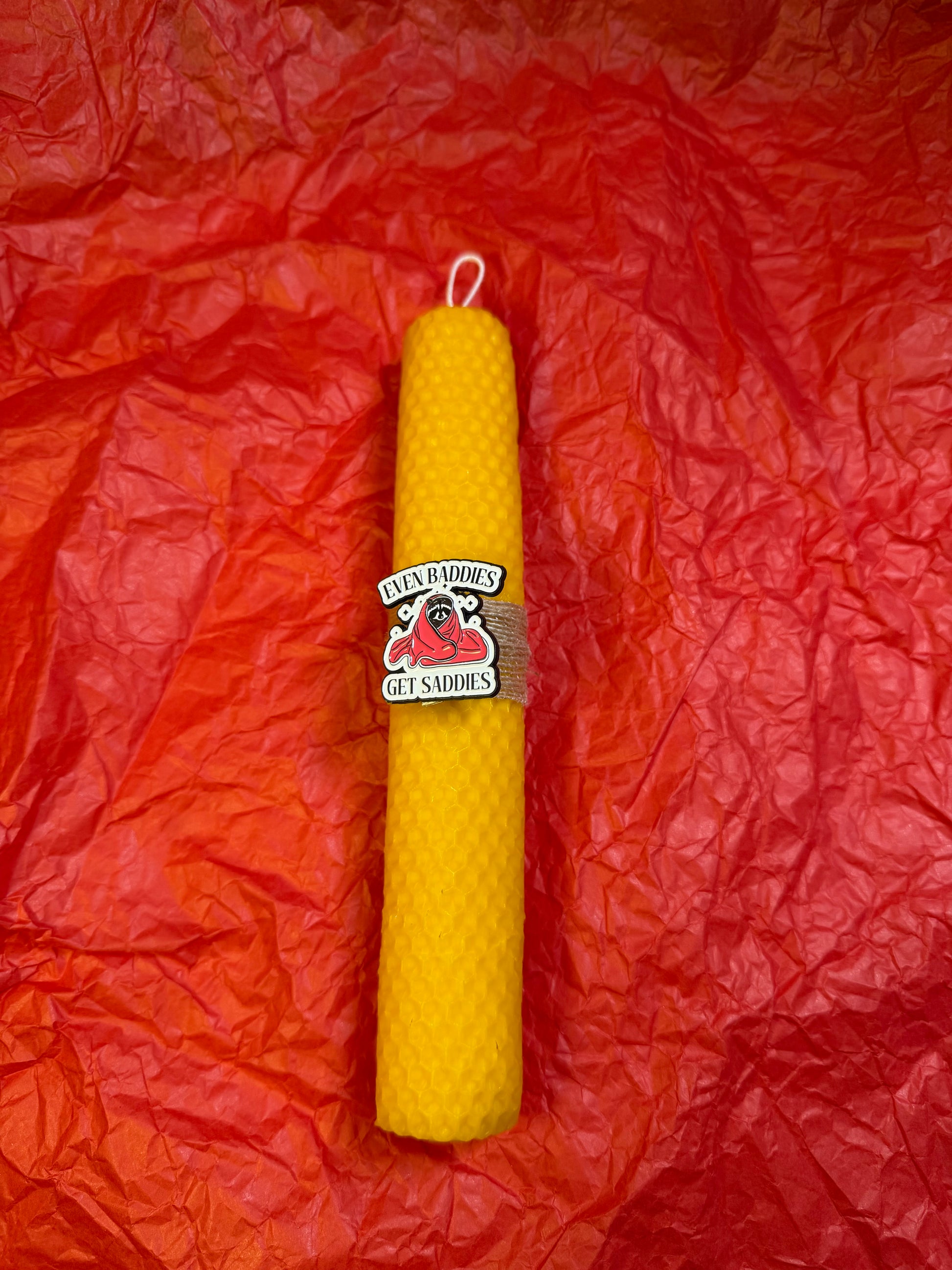 100% φυσικά φύλλα μελισσοκεριού από Έλληνες παραγωγούς. Διακοσμημένο με pin EVEN BADDIES GET SADDIES, κατάλληλο για όσους νιώθουν έτσι.🤷🏻