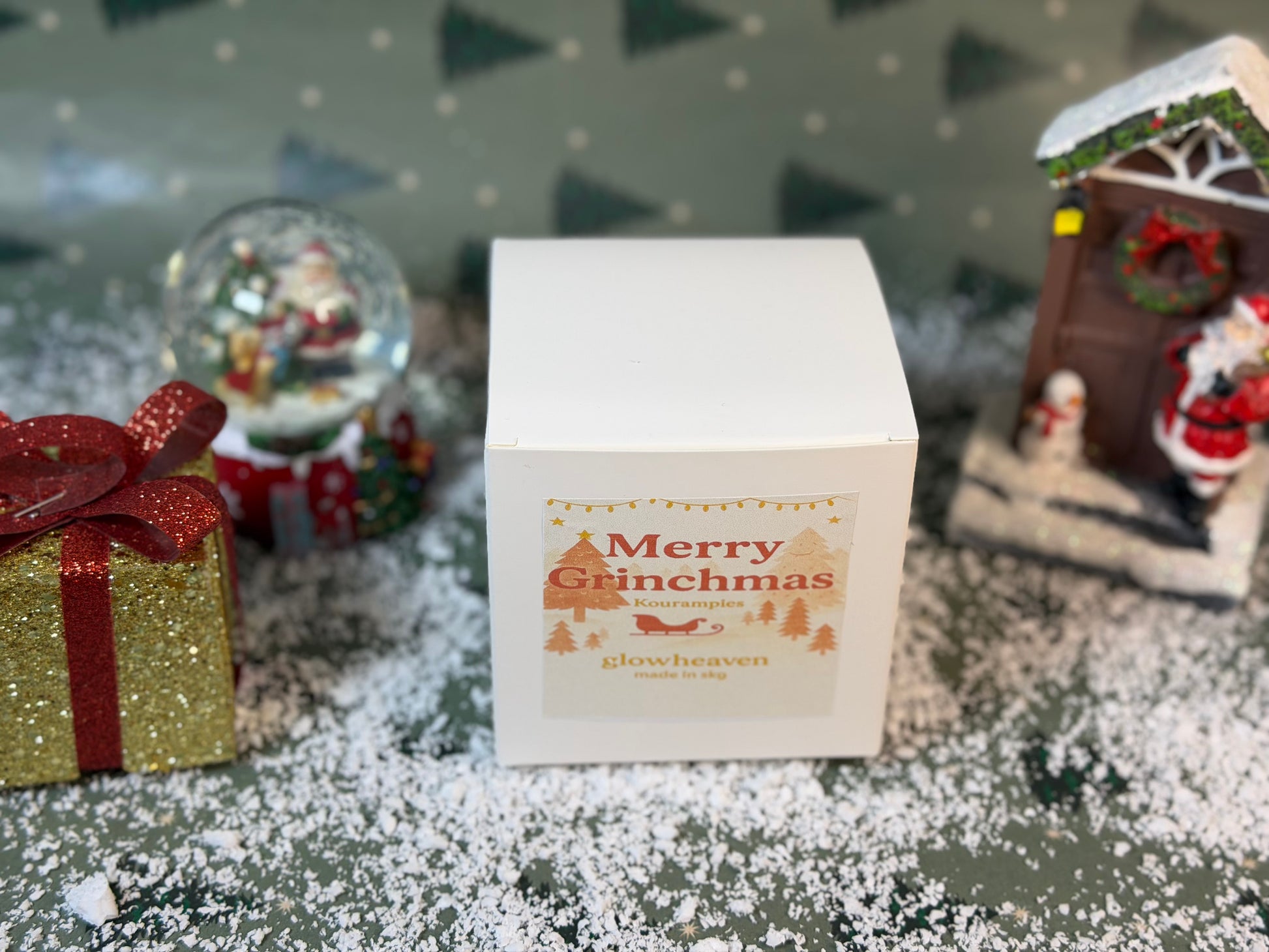 Το Merry Grinchmas (230gr) με άρωμα κουραμπιές , με νότες βανίλιας, αμυγδάλου και ζάχαρης άχνης που γεμίζουν τον χώρο με τη γλυκιά θαλπωρή των γιορτών.