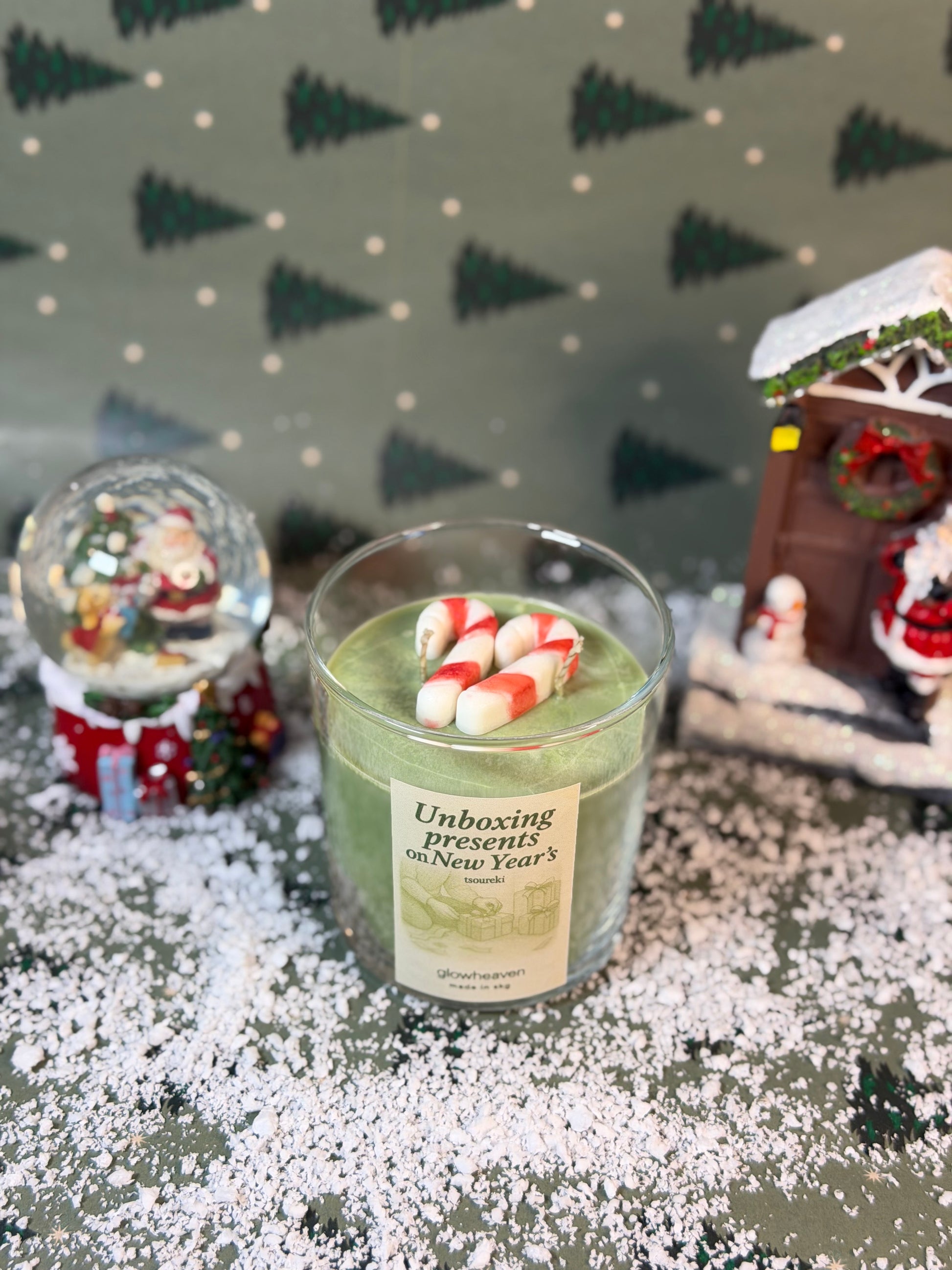 Το Unboxing presents on New Year’s (240gr) της GlowHeaven είναι ένα χειροποίητο κερί σόγιας με άρωμα τσουρέκι, γεμάτο νότες βανίλιας, μαχλεπιού και πορτοκαλιού.
